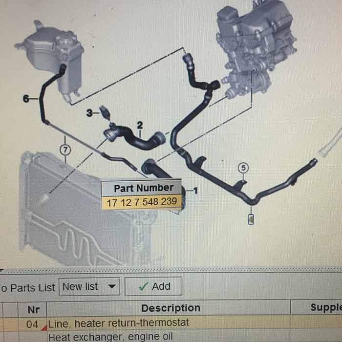 Coolant heater Hose pipe 17127548239 7548239